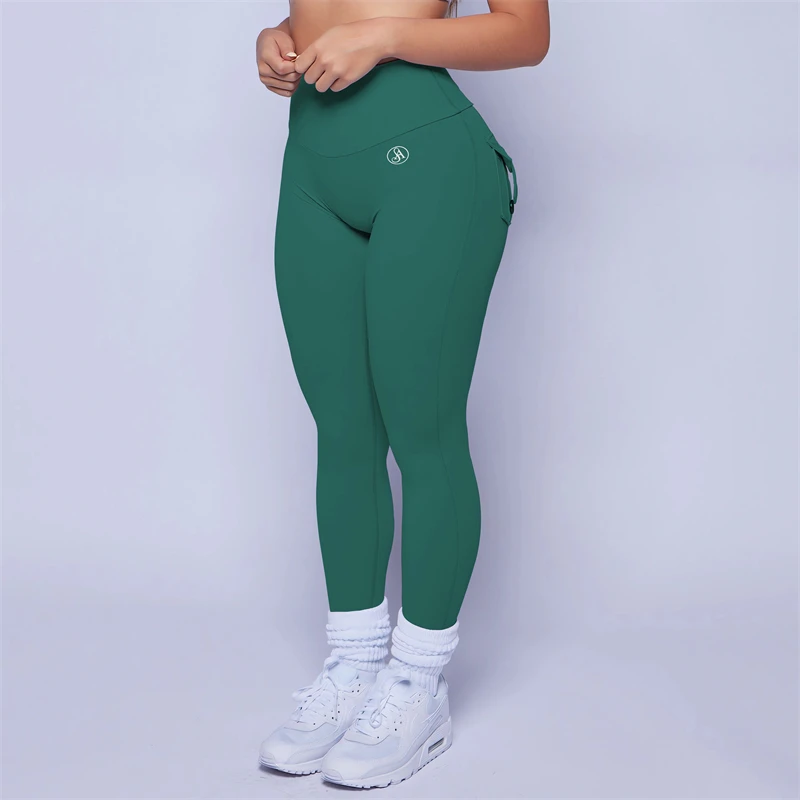 The high-rise waistband provides tummy control and stays in place through every squat, stretch, and sprint. Crafted from soft, stretchy, sweat-wicking fabric, these leggings feel weightless while offering full coverage. Plus, functional side pockets keep your essentials close—no bag needed.